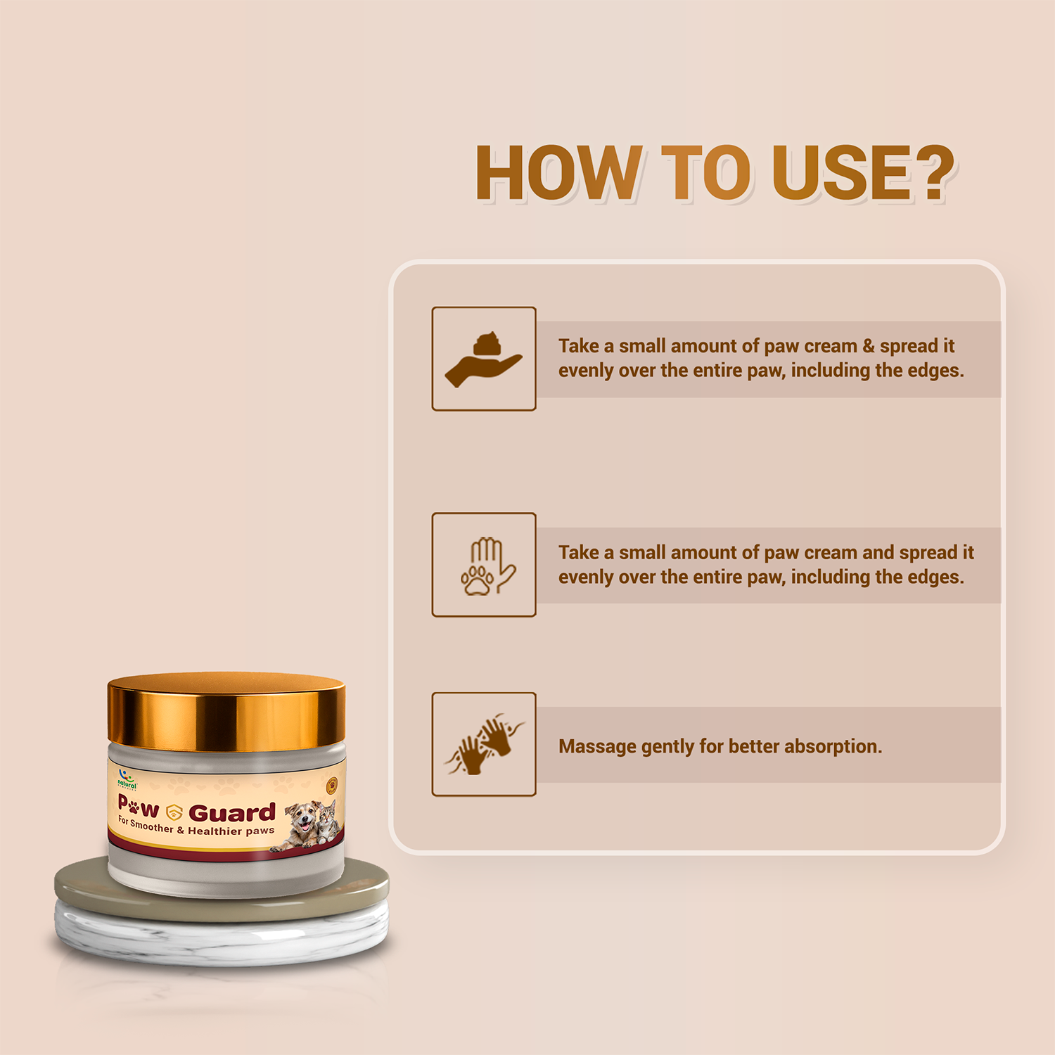 For smoother & Healthier Paws All natural and safe formula, that pampers your pet’s paws. Restore paw pad softness and overall health. Paw Guard soothes, moisturizes, and shields delicate paw pads. It actively heals and relieves dry, cracked paws and elbows. Its nourishing blend delivers top-tier skin conditioning benefit along with anti-inflammatory effect.