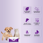 Designed to be truly all-in-one, each wipe gently cleans the body, fur, paws, face, nose, ears, eyes, and hygiene areas without irritation. Free from alcohol, parabens, and sulphates, they’re safe for all breeds and all age groups, including pets with sensitive skin. Perfect for quick clean-ups at home, on walks, or while traveling—no water required.