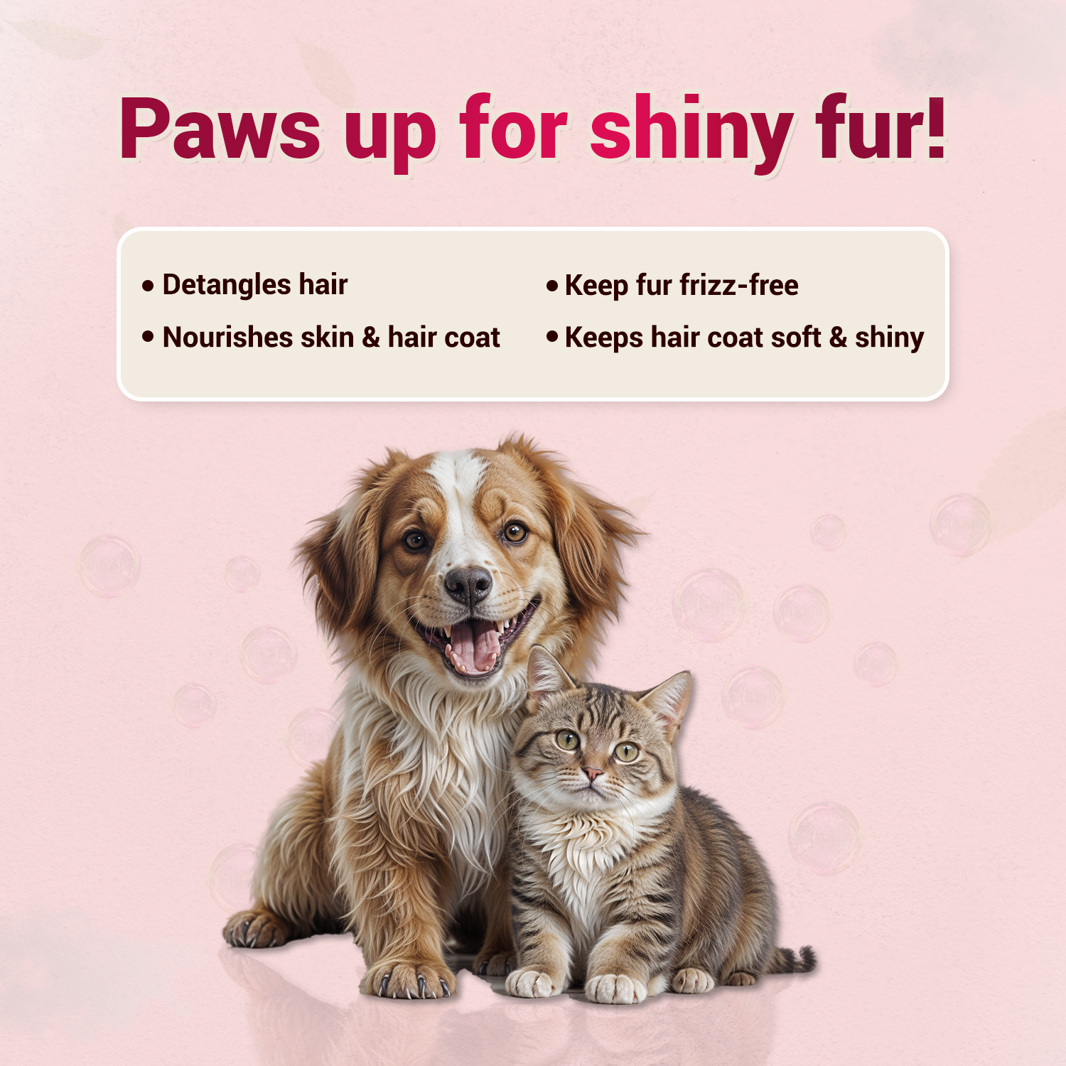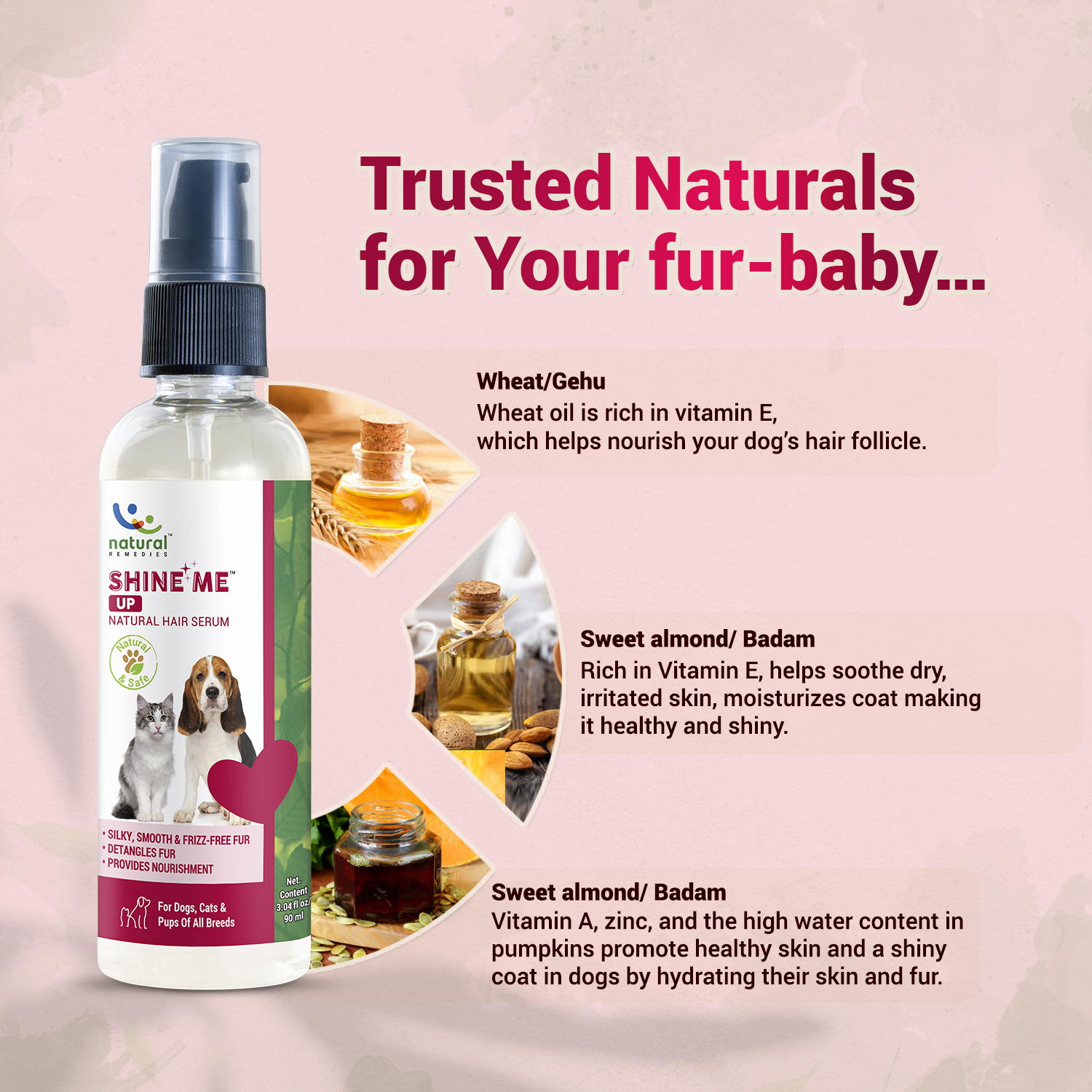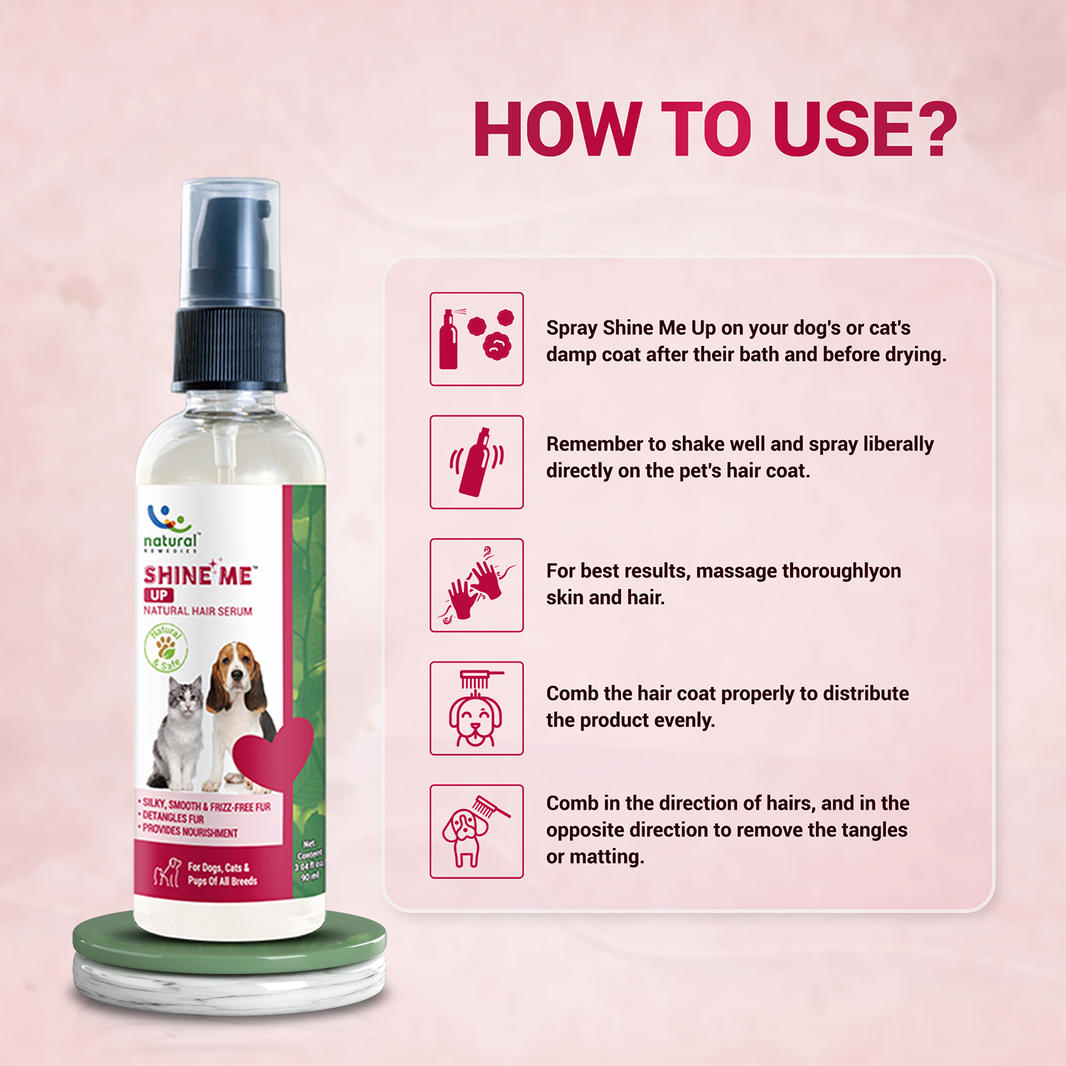 Shine Me Up includes natural oils and detangling agents to keep the coat smooth and shiny.